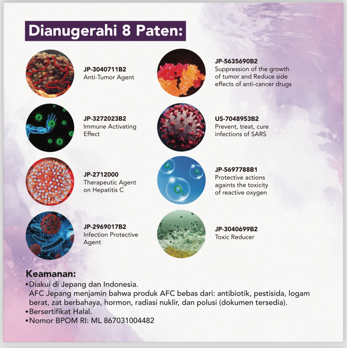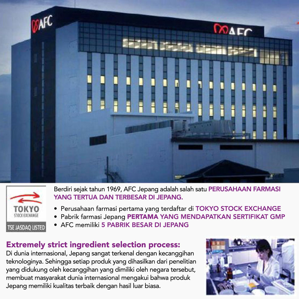 Semua Produk AFC dibuat dan diproduksi oleh Perusahaan AFC Lifescience Japan. Artinya 100% diimpor dari Jepang (100% Made in Japan) termasuk dikemas di Jepang sehingga pada saat sampai di Indonesia sudah dalam bentuk jadi.