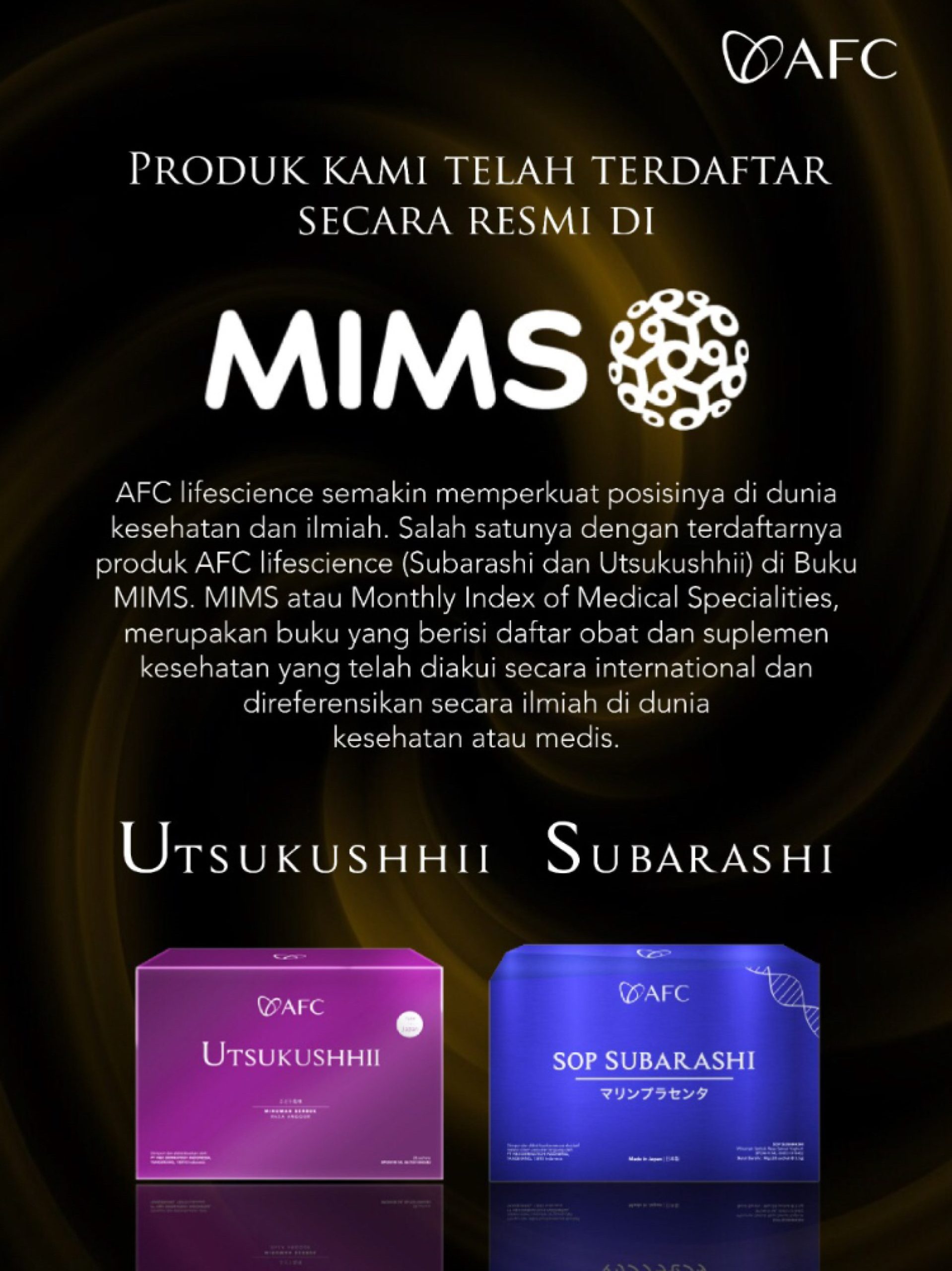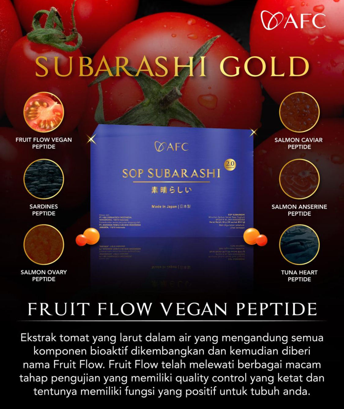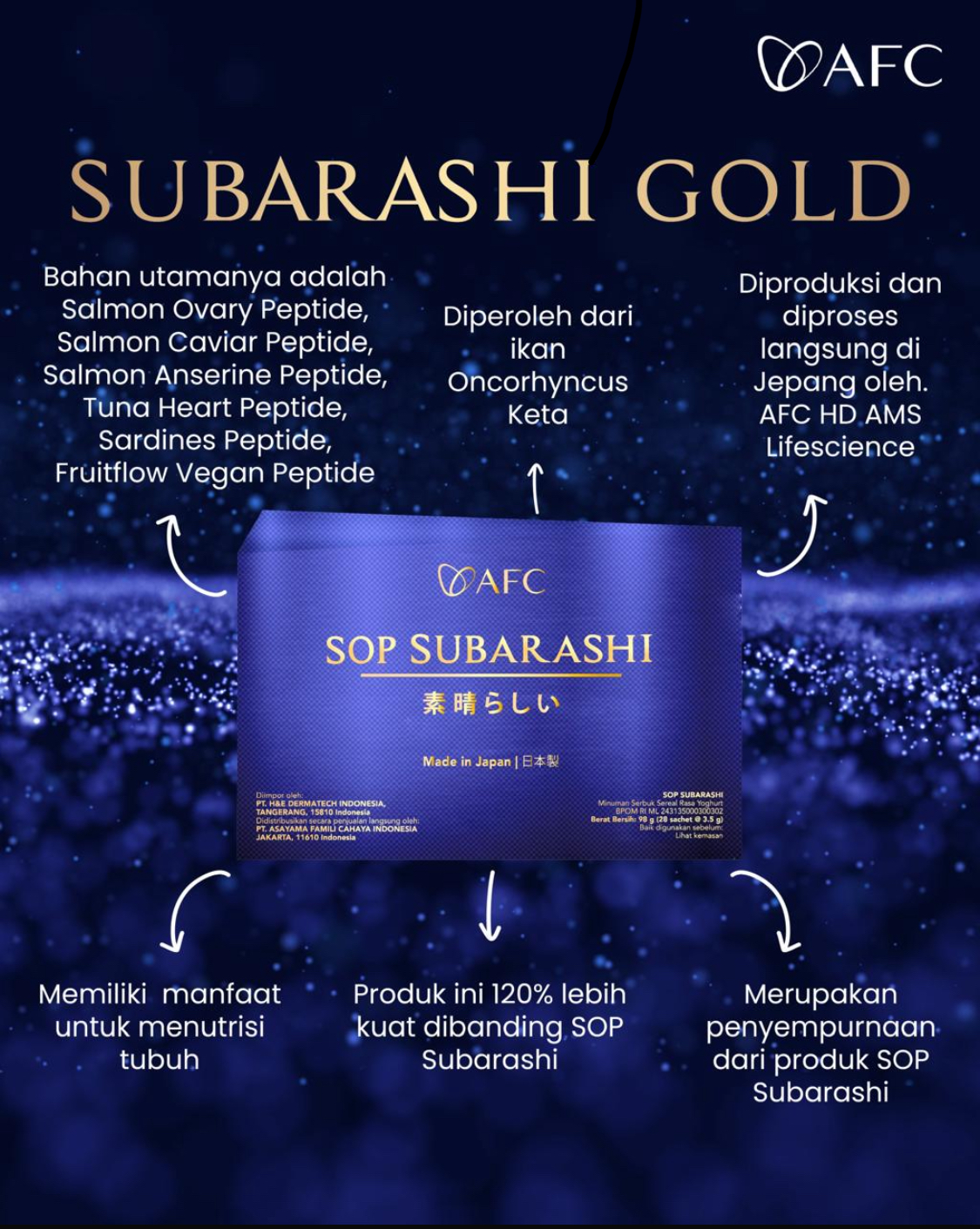 - Kami merupakan Authorized Official Stokist/Distributor Resmi Official AFC yang memiliki toko fisik dan stok barang paling lengkap (SOP Subarashi Gold, Utsukushhii Gold, Hikari) & Pasti Asli & Terjamin Original