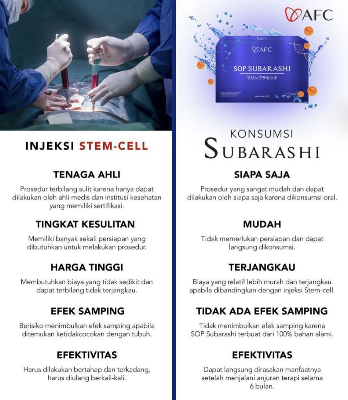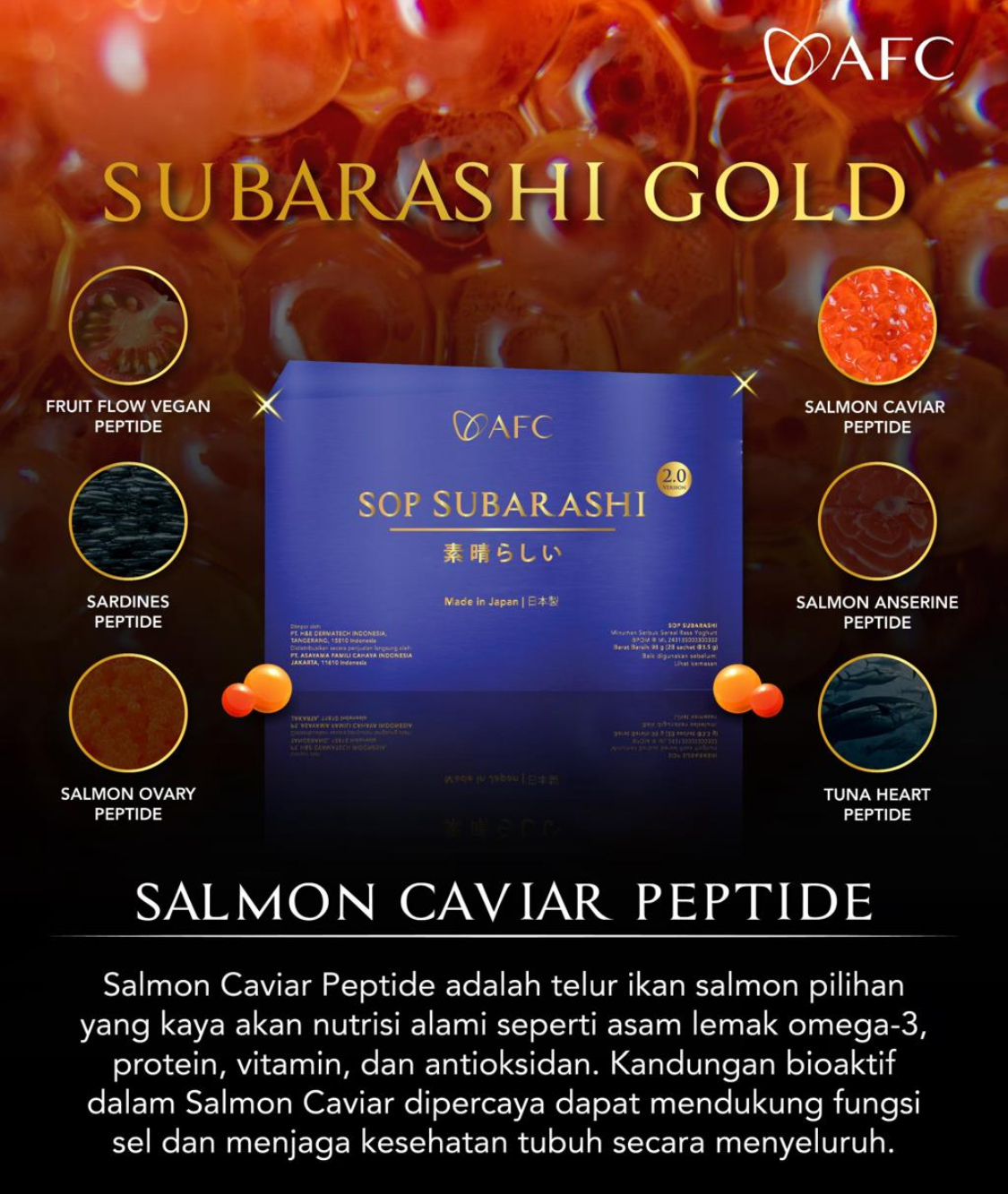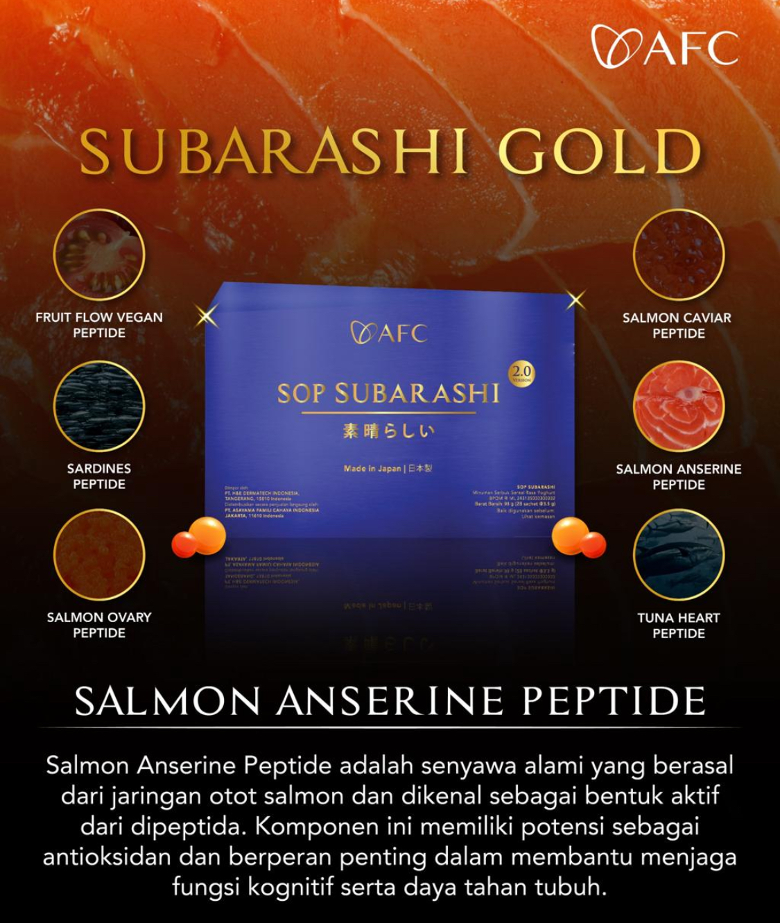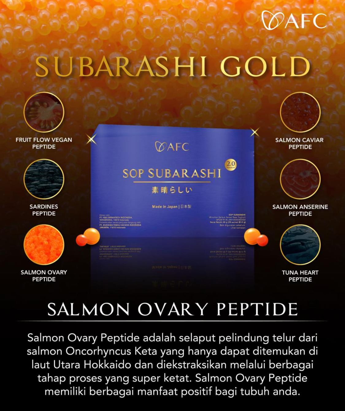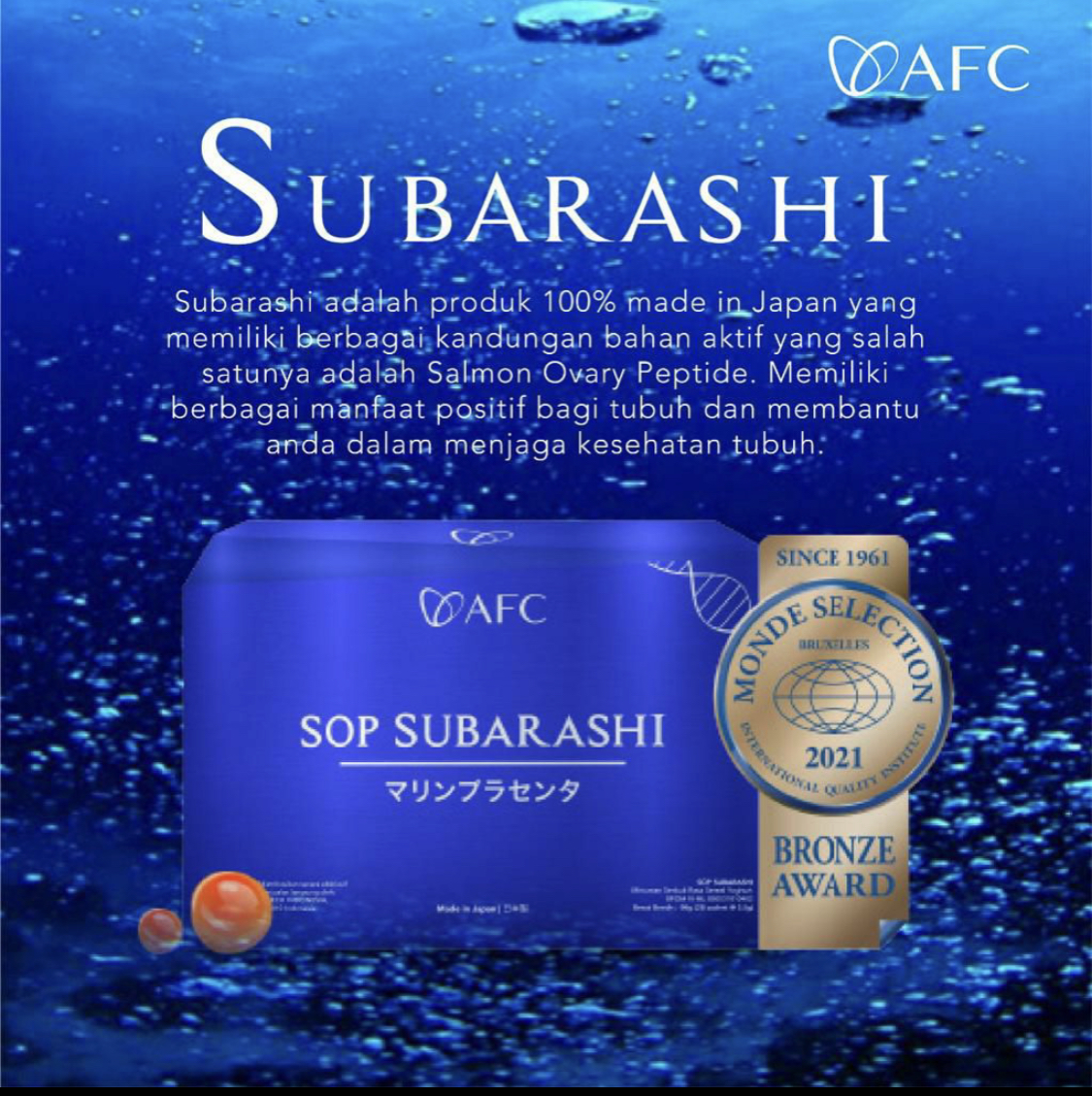 Dengan memesan di sini, Anda akan memperoleh AFC SOP SUBARASHI GOLD, AFC UTSUKUSHHII GOLD, AFC HIKARI yang ASLI & ORIGINAL dengan tanggal expired terjauh.